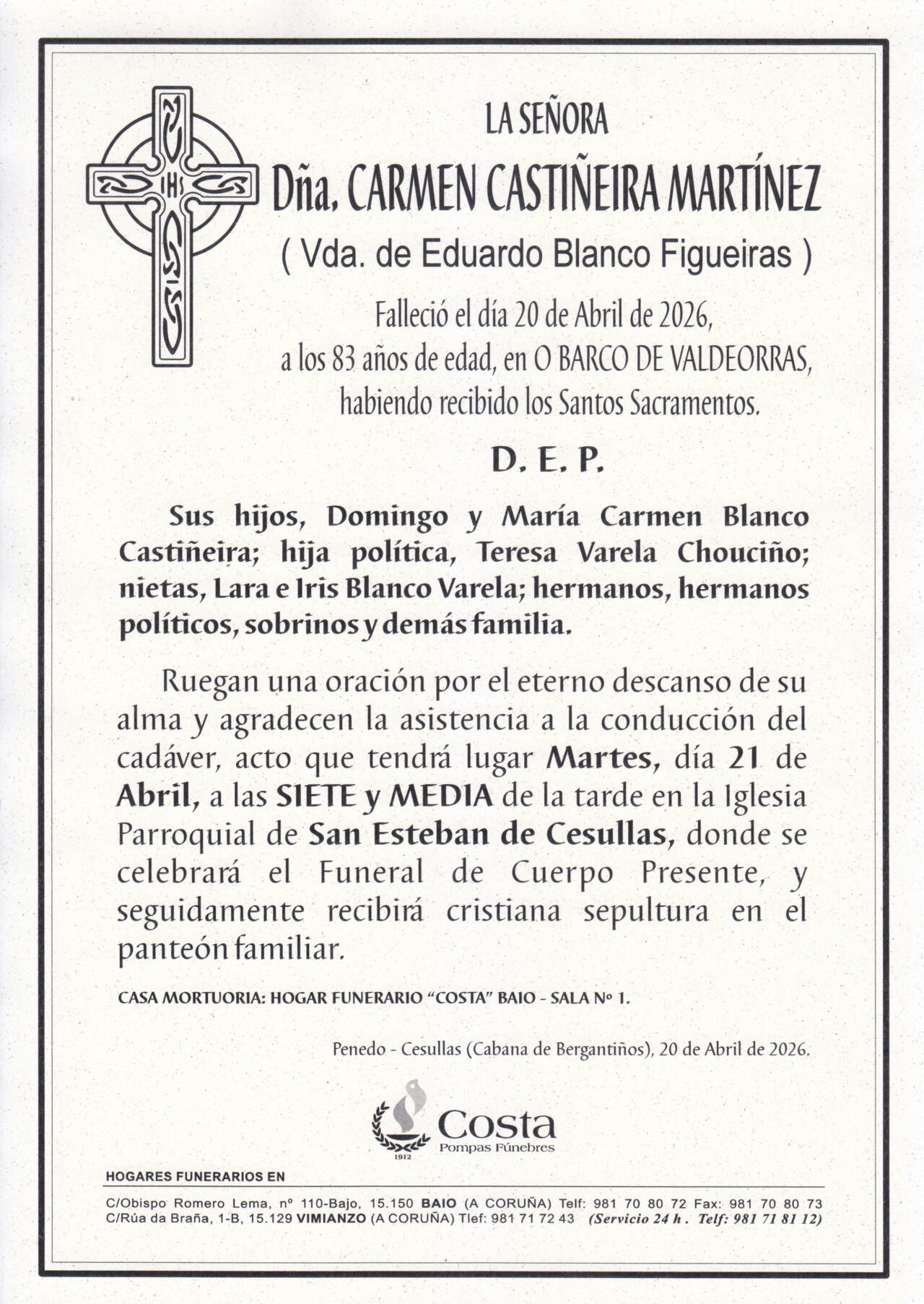 Calle Bispo Romero Lema, 110 Bj - Baio