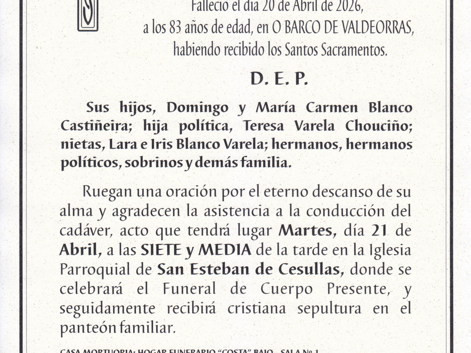 LA VELACIÓN SE ABRIRÁ MAÑANA, MARTES, A LAS NUEVE DE LA MAÑANA